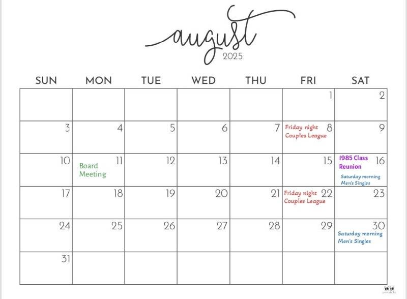 August Calendar